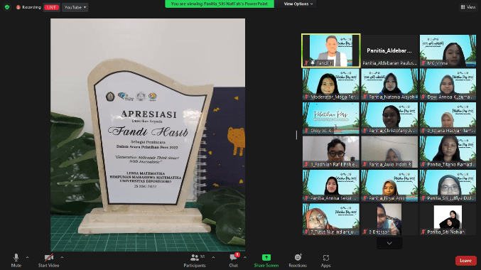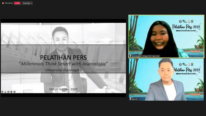 Pelatihan Pers 2022 yang diselenggarakan oleh Biro Lemma Himpunan Mahasiswa Matematika Universitas Diponegoro kembali dilaksanakan pada hari Minggu, 15 Mei 2022 secara daring melalui via Zoom dan disiarkan langsung via Youtube dengan mengangkat tema “Generation Millennials Think Smart with Journalistic”. Diharapkan generasi milenial dapat berperan dalam menghimpun berita dengan berdasarkan fakta, serta bertanggung jawab atas informasi yang disampaikan. Ada pun generasi milenial dapat mengaplikasikan bagaimana cara bersikap, berkomentar, dan menanggapi suatu berita yang diterima guna meminimalisir timbulnya berita hoax.